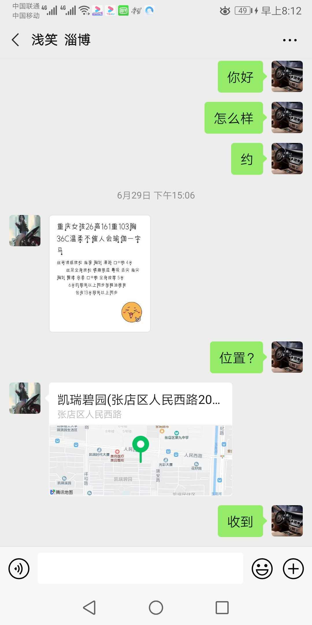 [xinxitop]提示信息[/xinxitop] 【寻欢时间】:2020年6月29日 【寻欢地点】:淄博 【信息来源】:论坛、亲身体验 【服务项目】:鸳鸯浴,漫游,胸推,69式,冰火,口活,爱爱 【妹妹数量】:1 【环境设备】: 租房 【营业时间】:全天 【价格一览】:400/次 【安全评估】:88。 【服务星级】:★★★★★(最高5星)应适当评价质量 【重点推荐】:年轻,柔 【联系方式】: 为了鼓励会员积极回复验证,只要原帖没聊天截图的,参与验证回复聊天截图都奖励100金币。 【寻欢细节】:首先声明,微信号目前可以加,过一段时间失效不要举报哦。这个女孩比较年轻,瘦小,有点黑,服务过程还可以,关键是重庆的,我的最爱。 【附带照片】: