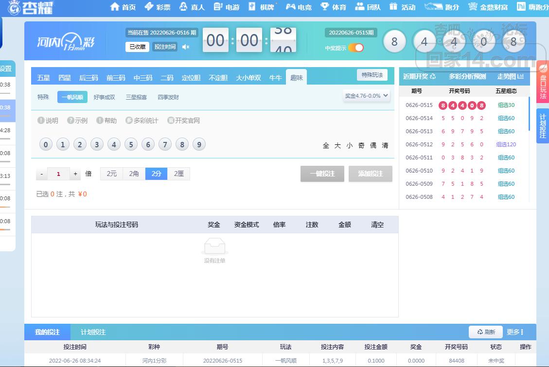 杯具咯,一分彩一个也不中!