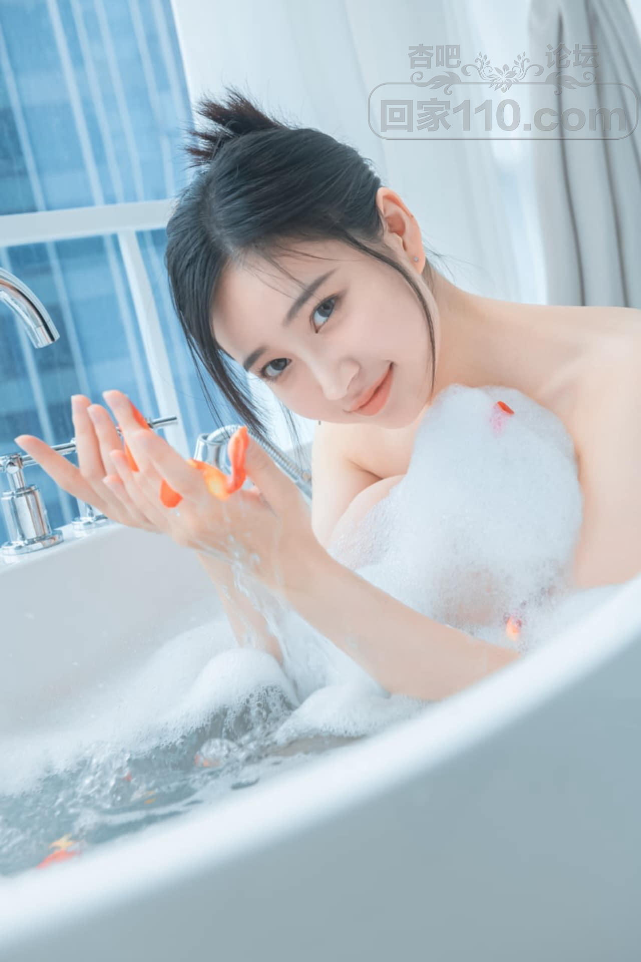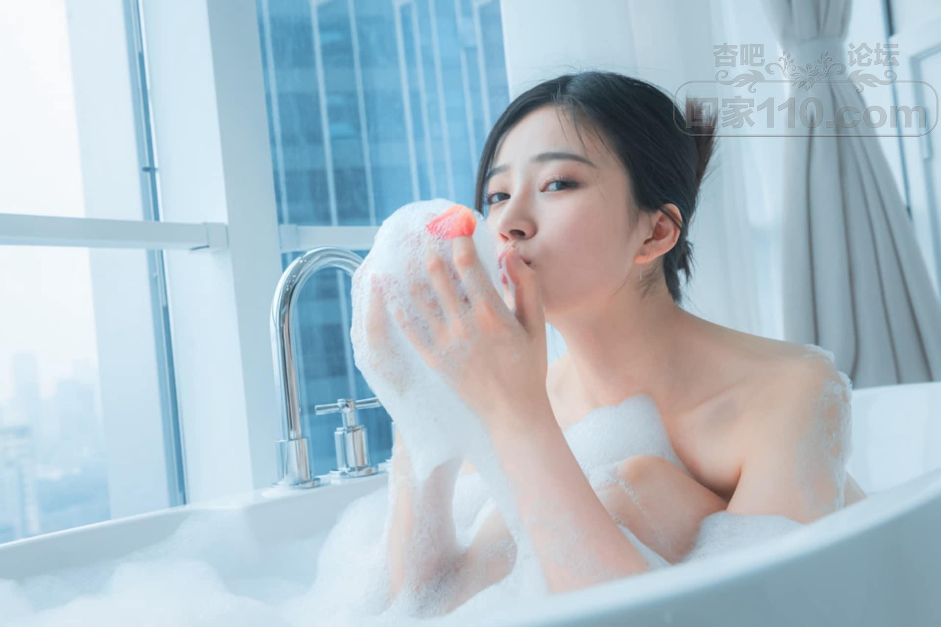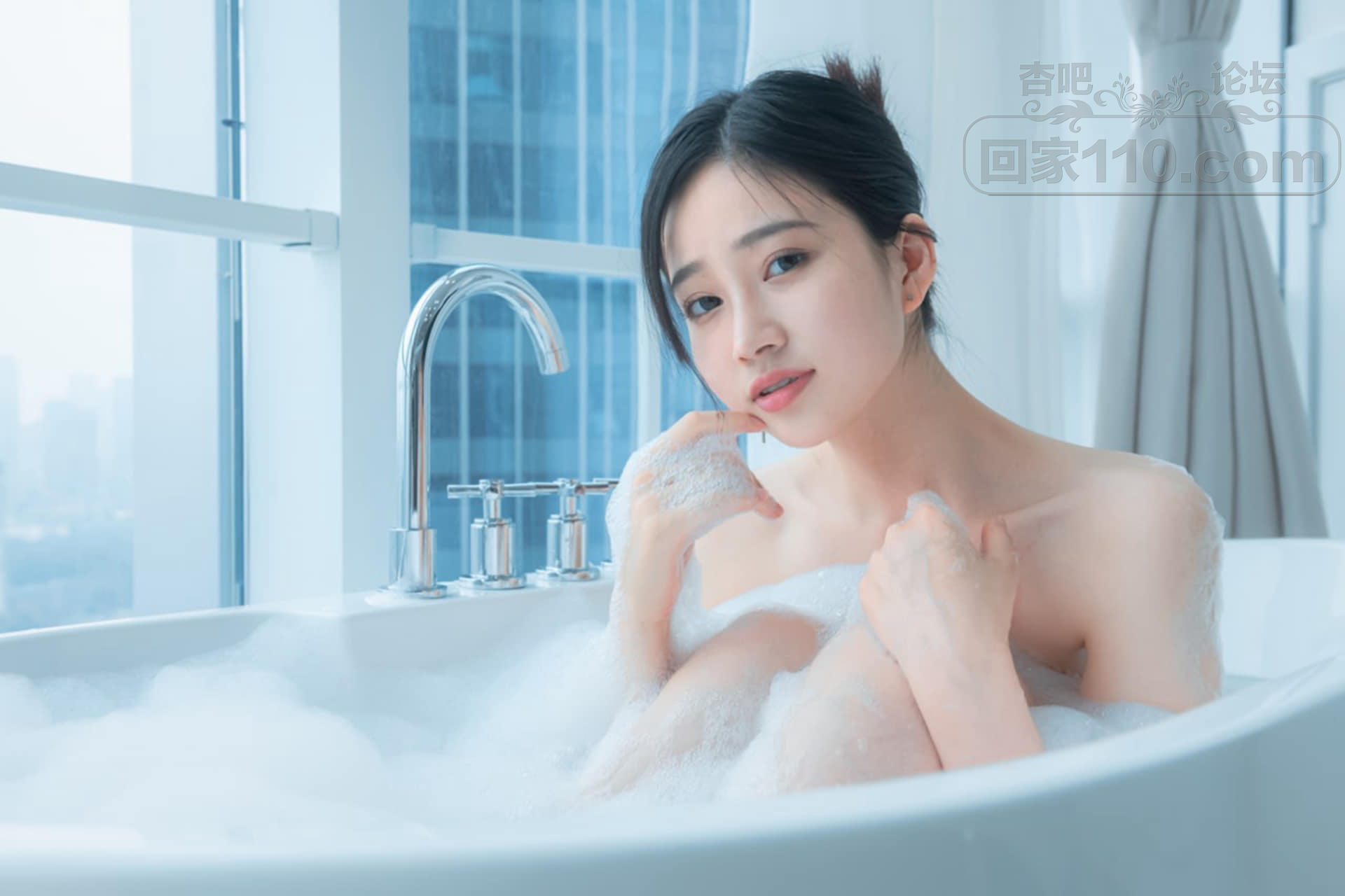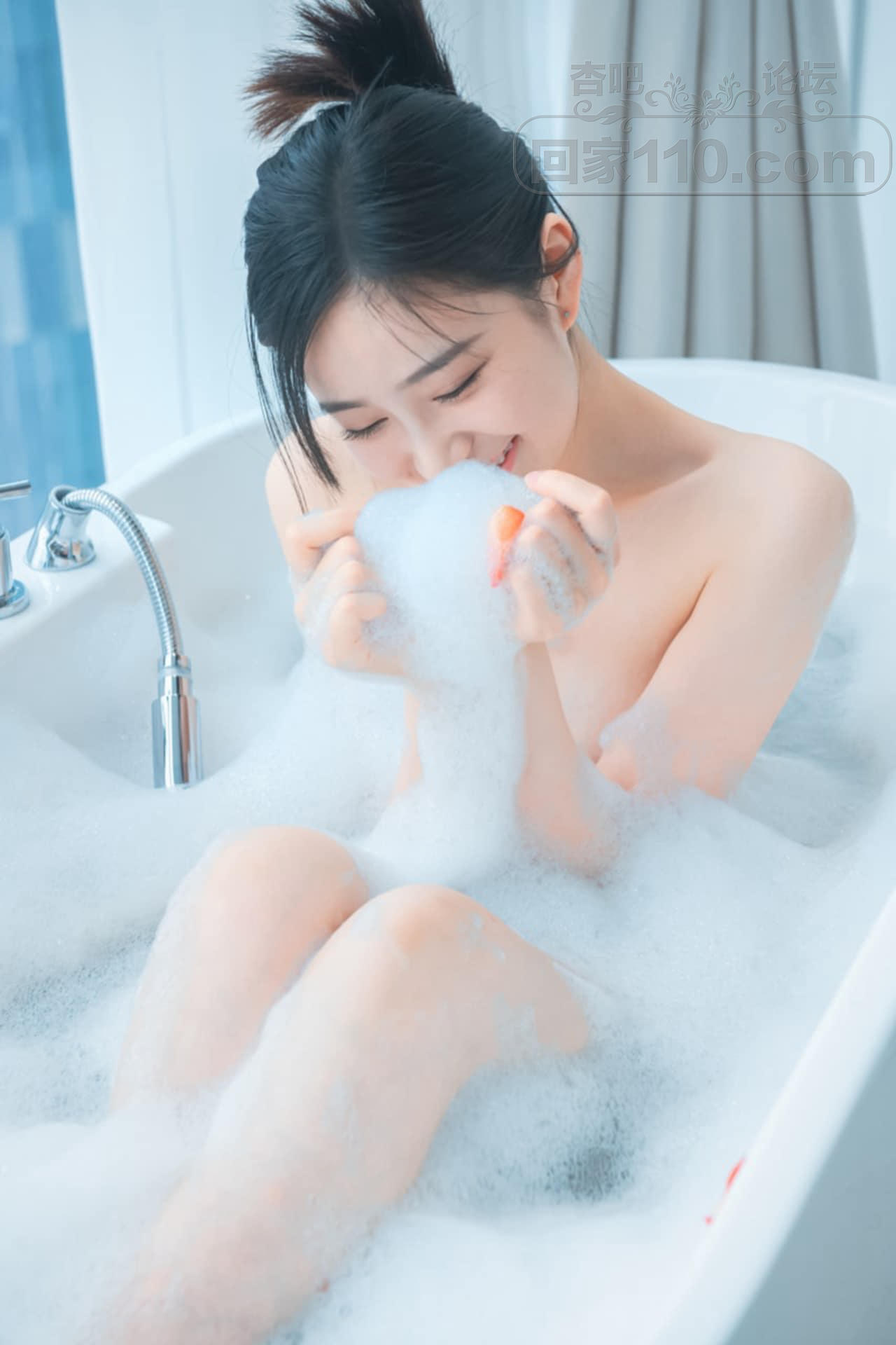 成熟美少妇家中浴缸落体泡泡浴隐秘部位遮挡【23P】