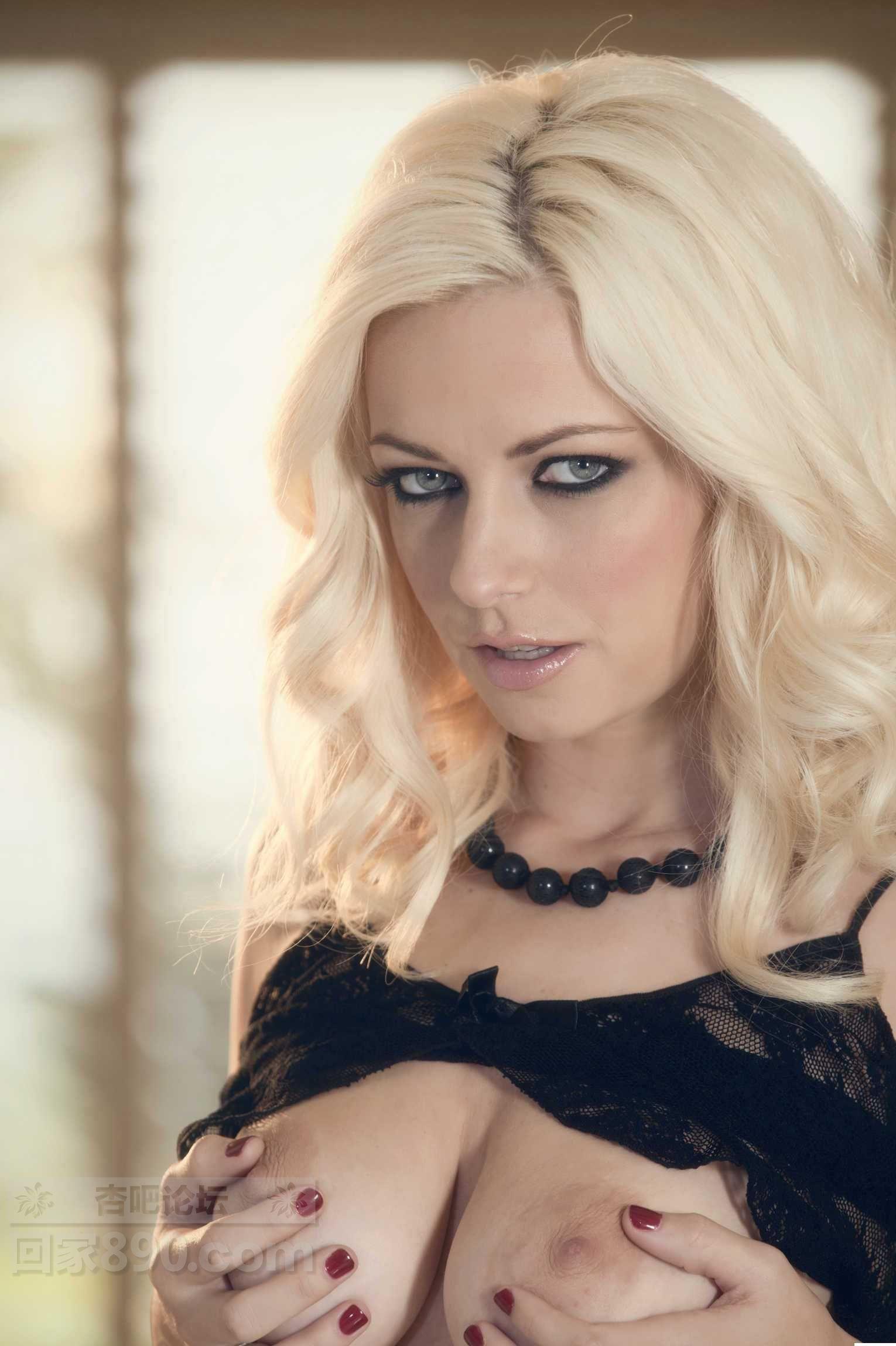 穿着情趣吊带黑丝内衣套装的金发美女【50P】