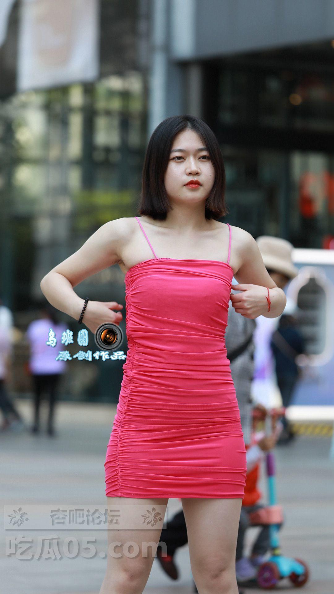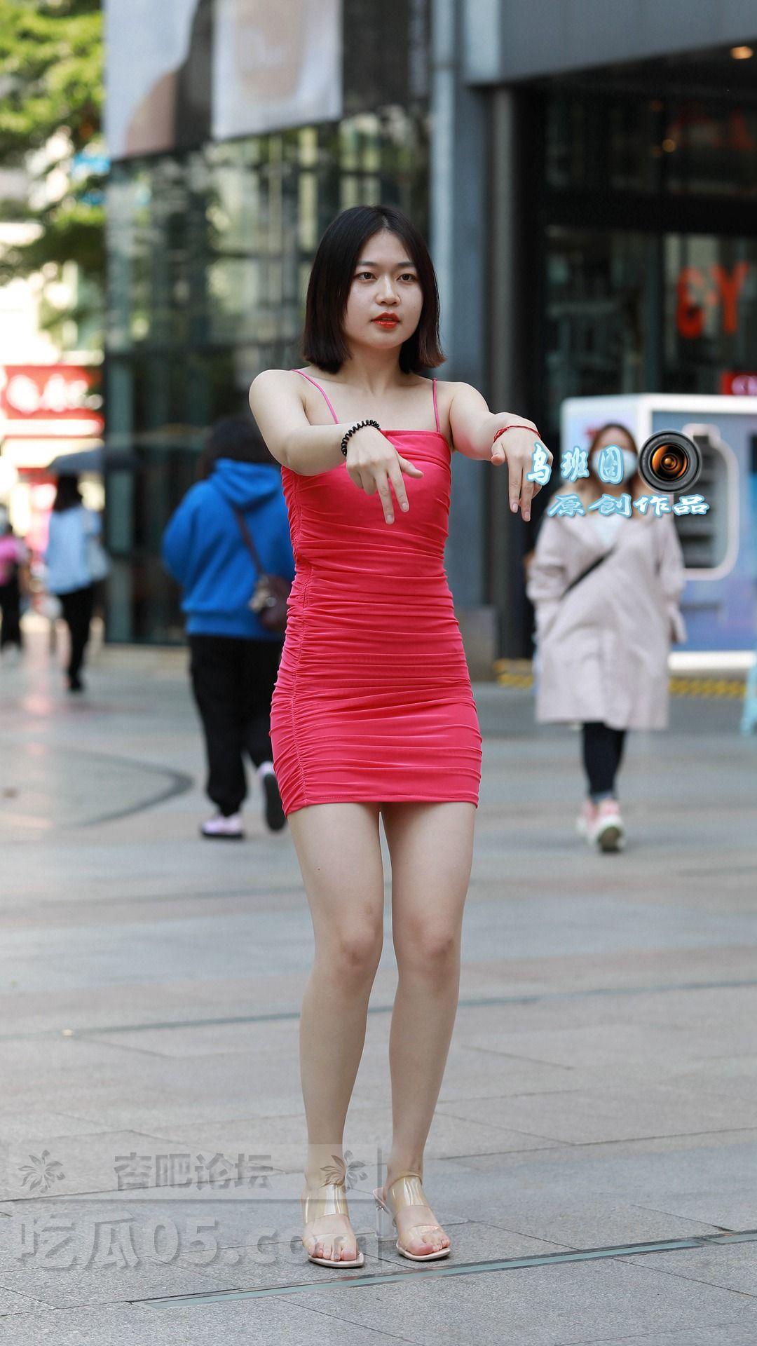 [街拍] 遇拍抖音跳舞的小姐姐,玫红色吊带紧身裙+水晶高跟凉鞋,身材丰满、大长腿又白又直【34P】 |