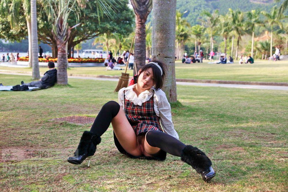 媳妇穿着短裙在公园露出不穿内裤的下体放尿潮吹【23P】