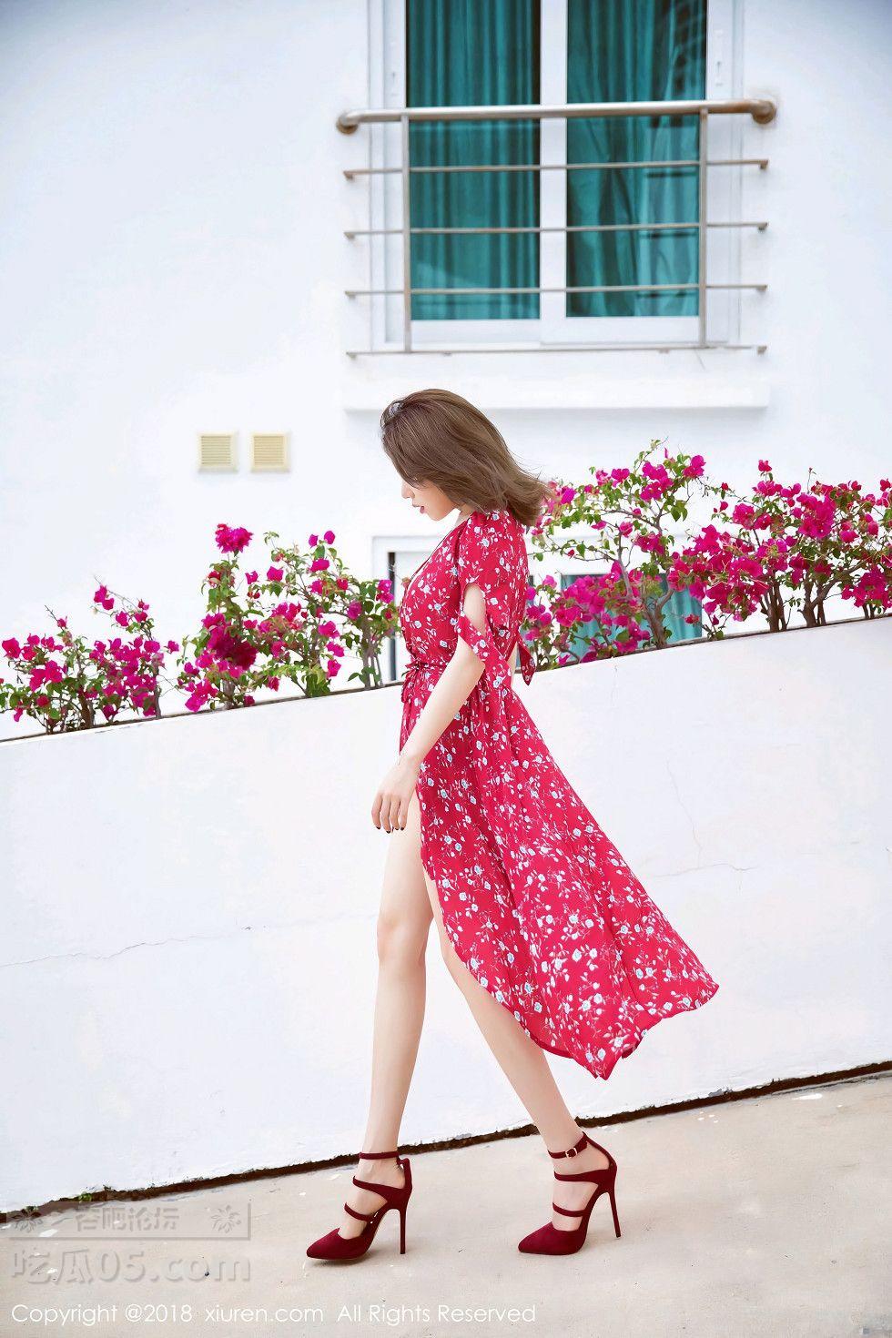 [美腿翘臀] 女神黄乐然户外性感红色连身裙低胸露傲人豪乳妩媚诱惑写真【10P】 |