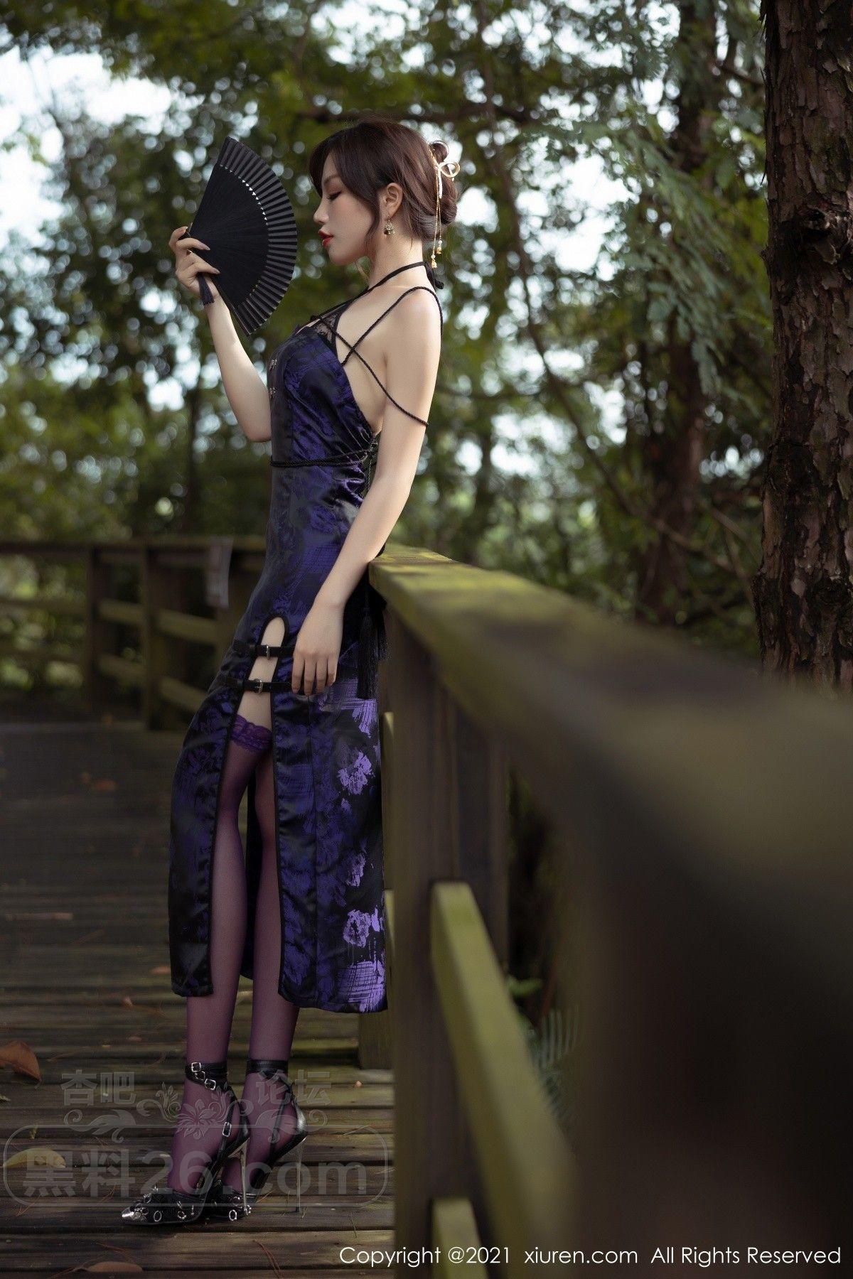 [美腿翘臀] 女神芝芝Booty私房紫色古典旗袍配薄透内裤秀翘臀美腿诱惑写真【50P】 |