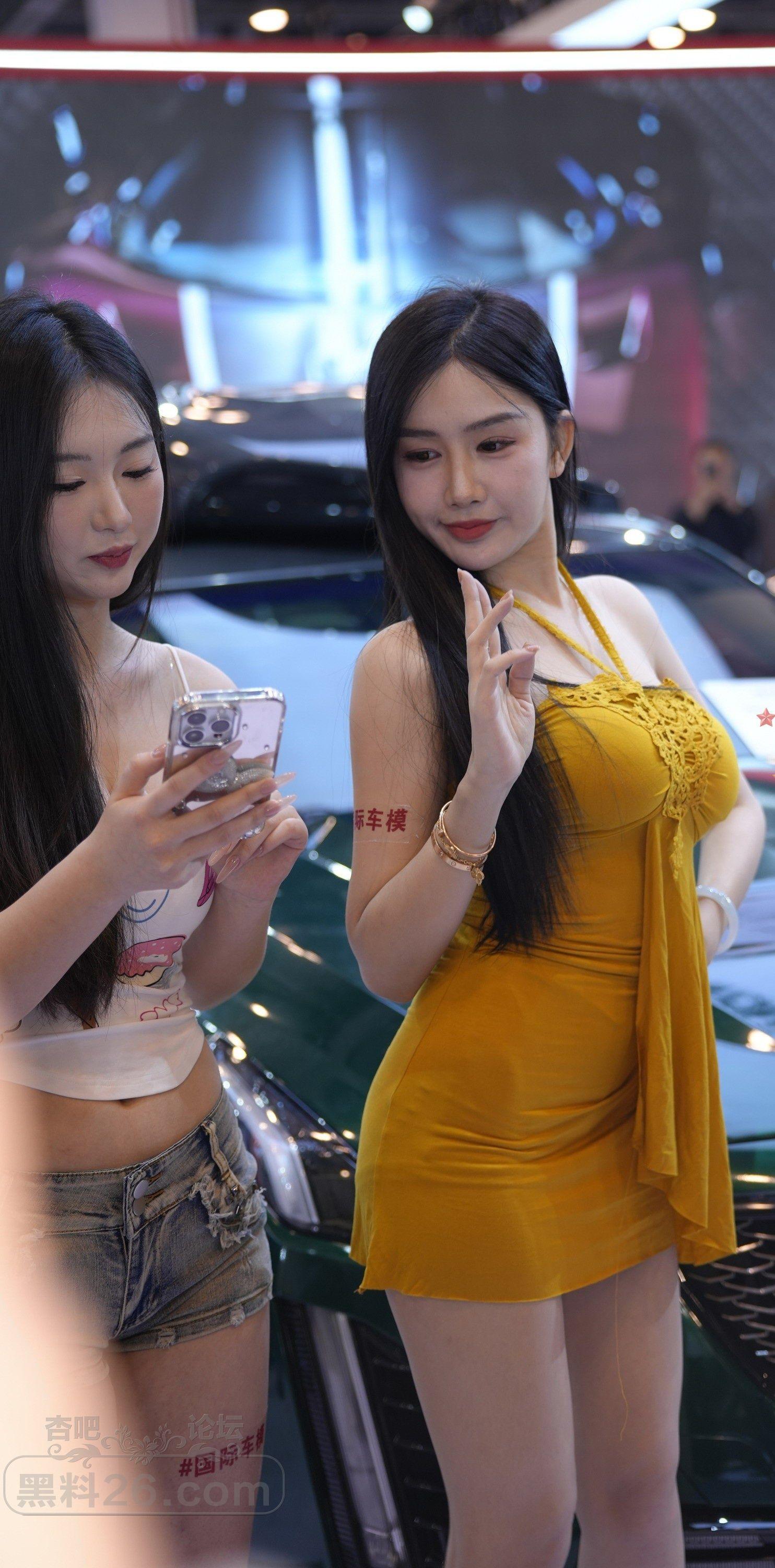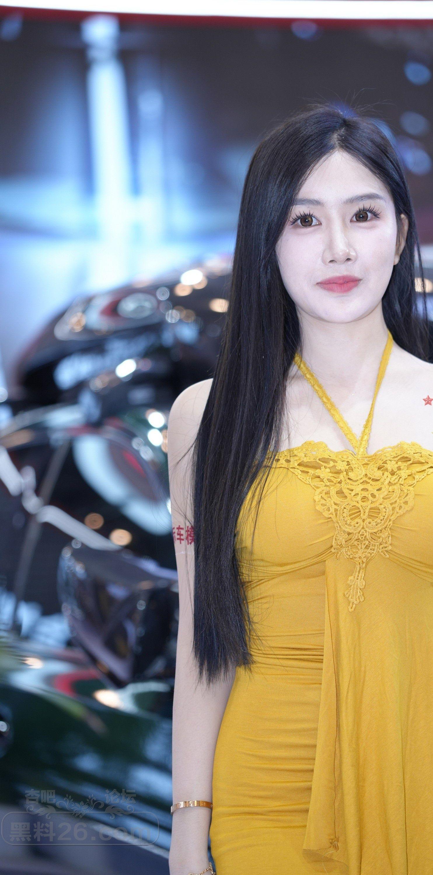 [街拍] 黄色吊带短裙长发美女车模前凸后翘好身材【10P】 |