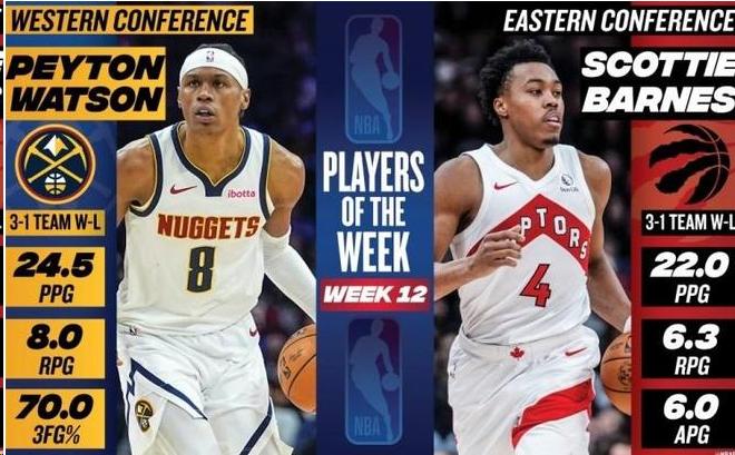 [|赛事快报] 【体育专栏】NBA官宣周最佳:沃特森首次当选巴恩斯上榜 小卡阿夫迪亚等获提名 |