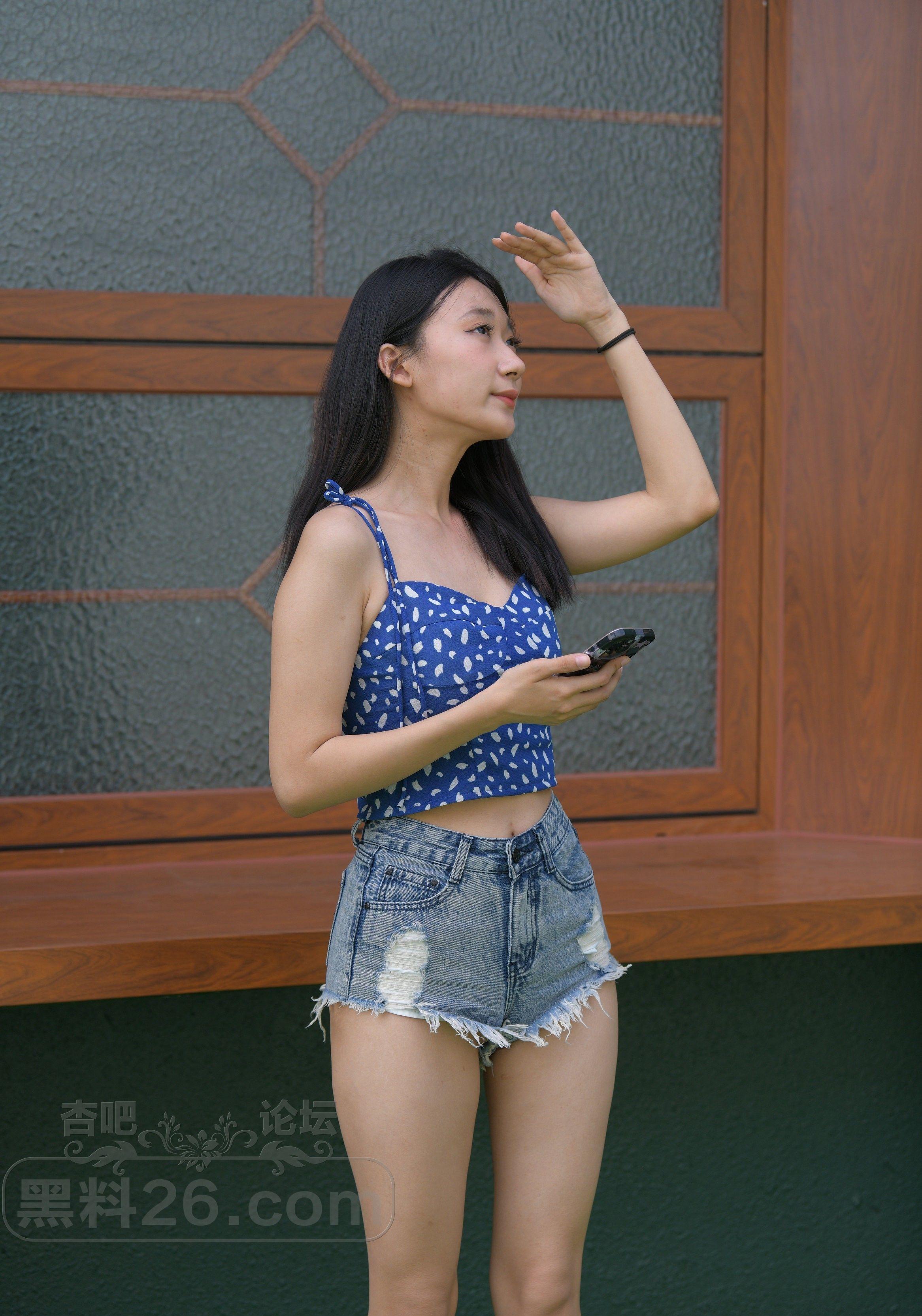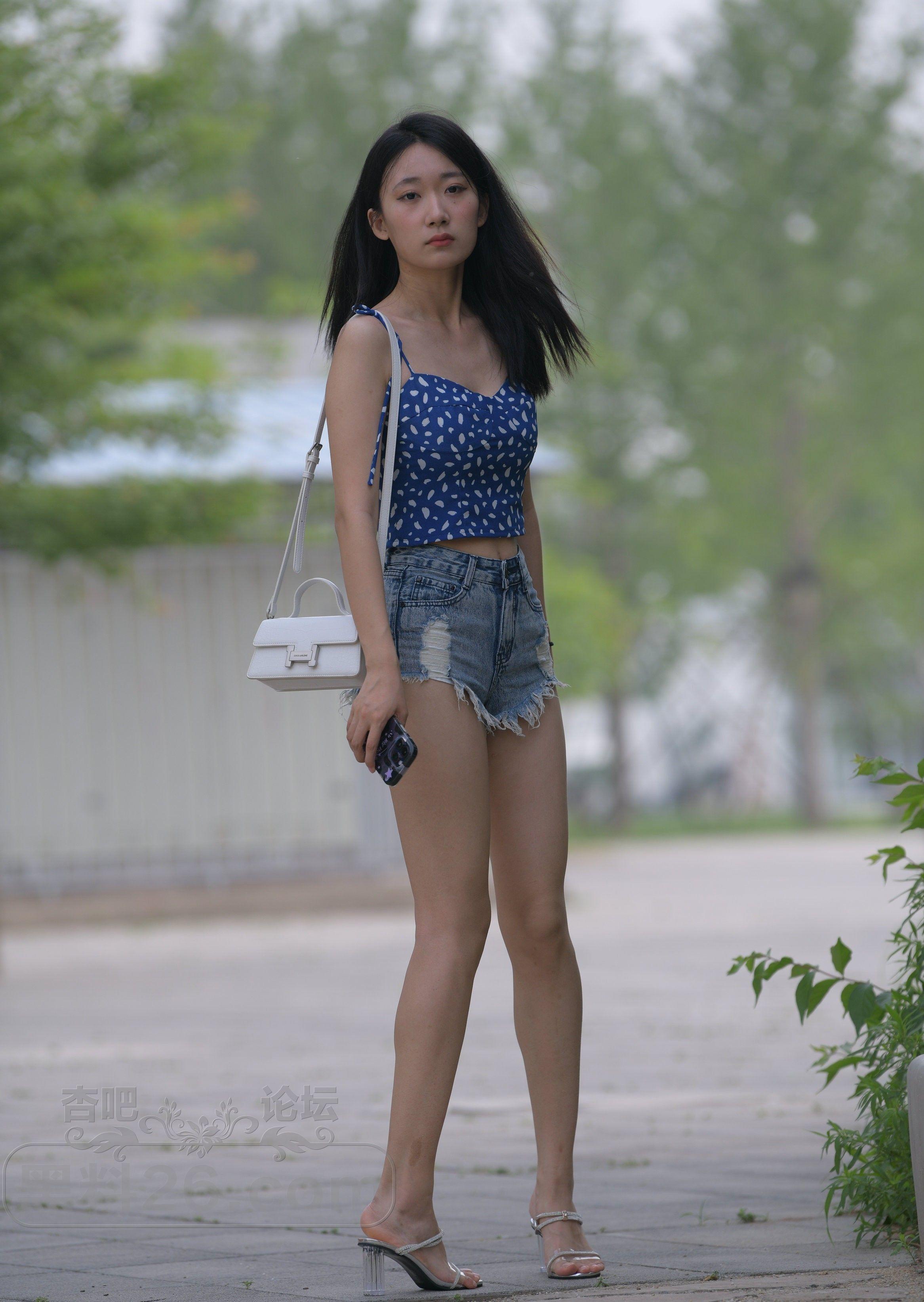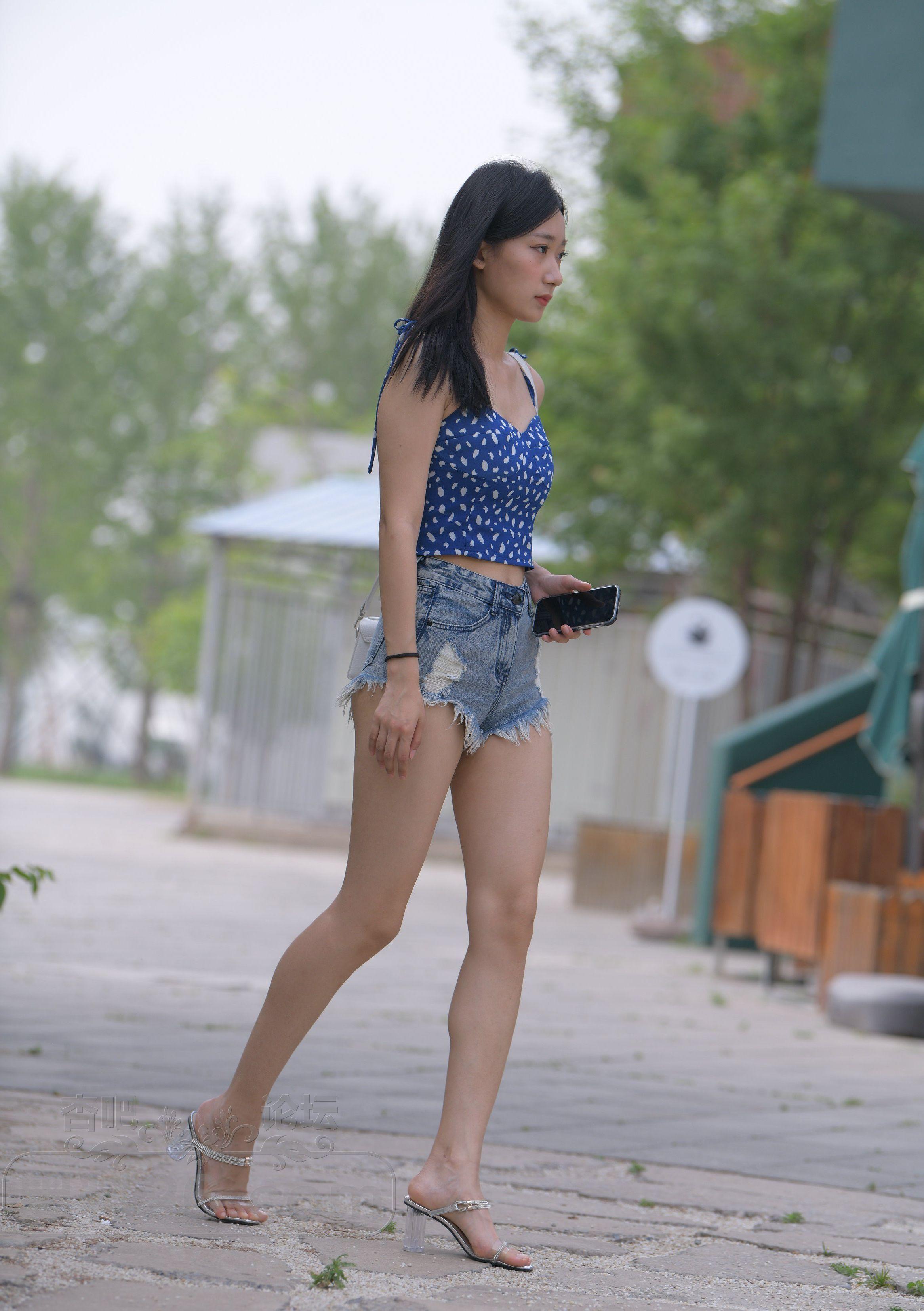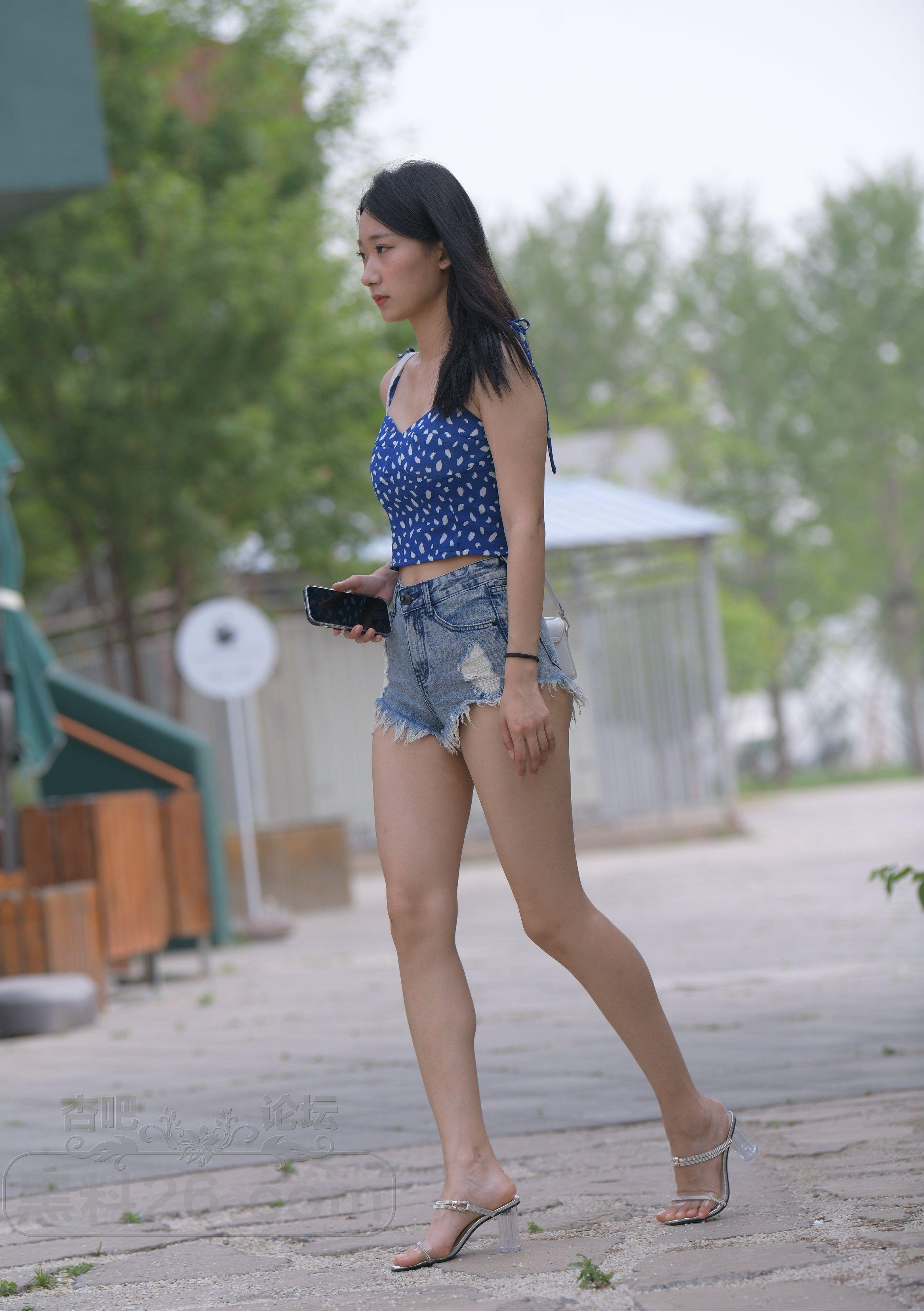 美女小姐姐穿着性感的毛边热裤吊带衫出街活力四射【19P】