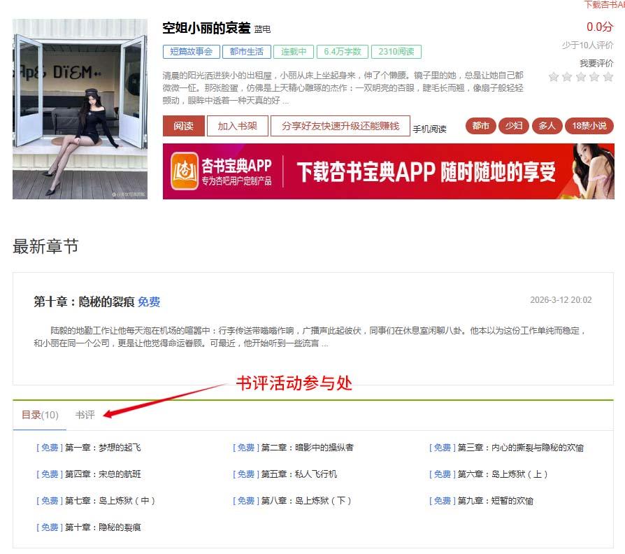 [公告/活动] [书吧活动]好书限免分享 第120期《空姐小丽的哀羞》参与书评就得50贡献 |
